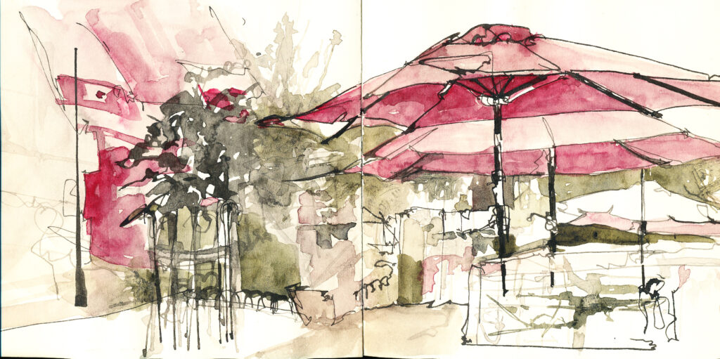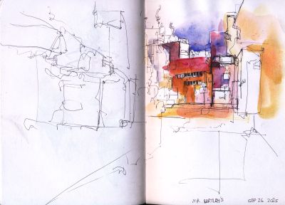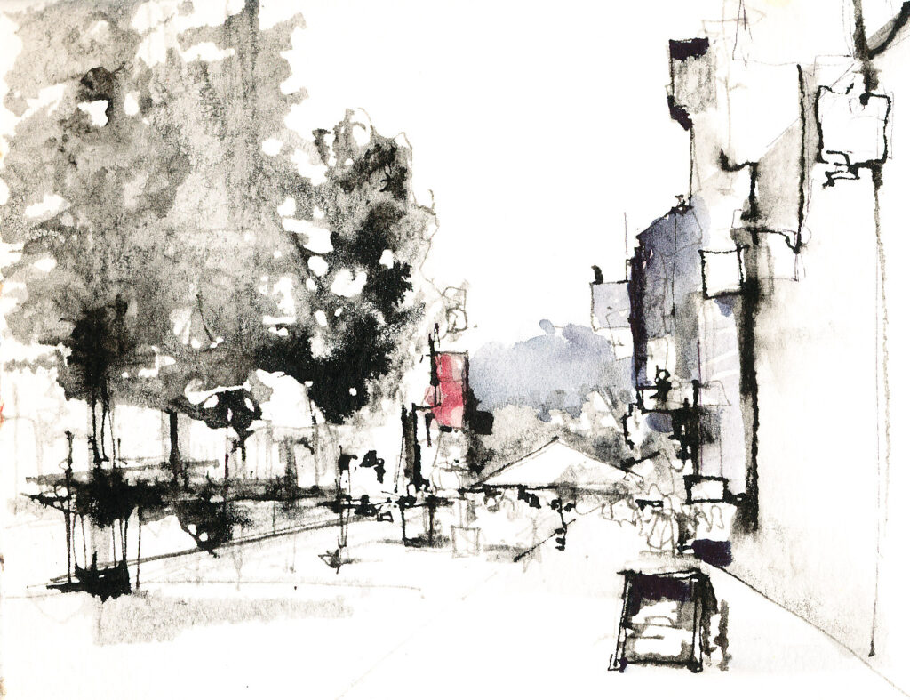 Working with pen, ink and watercolors, we will learn how to simplify scenes and produce loose expressionistic sketches. Our focus will be as much about mental approach as it will be about techniques suitable to each student. Urban sketching can be overwhelming and trying to capture every detail can be daunting so in this workshop we will explore various methods for making this manageable. Suitable for all skill levels.