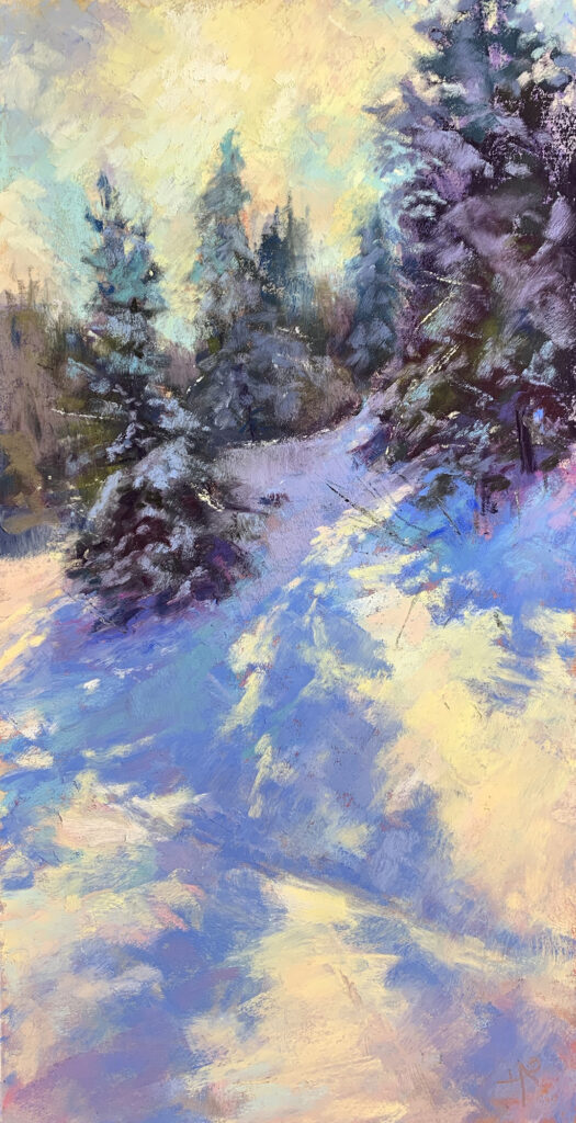 Lydia is a Signature Member of the Pastel Society of Colorado and a member of the Oil Painters of America. Her award-winning pastel work has been recognized nationally, most recently when her piece Along Dallas Divided was selected as one of ten artists in the Artist Network Over 60 Competition. She enjoys teaching pastel classes and workshops and draws ongoing inspiration from her travels with her husband, Tony, trekking, biking, and kayaking in remote locations around the world.