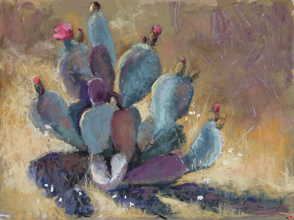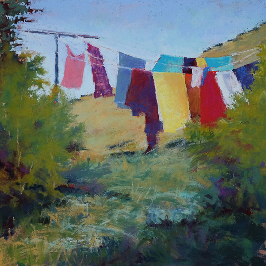Clare’s medium of choice is pastel and her preferred location is outside.