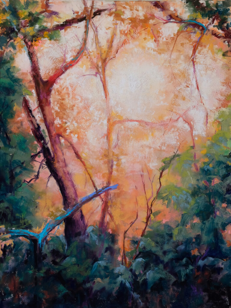 As a committed soft pastel painter, Clare Scott, uses a simple combination of pigment and binder to create a painting that expresses her love of color. Painting en plein air informs her studio work of the hues, shapes, atmosphere and the joy of being in the middle of it all. She uses a painterly style of mark making that is loose and spontaneous; evoking the wonder, feeling and beauty of being outside. Her focus is the constant transition between permanence and change in nature.