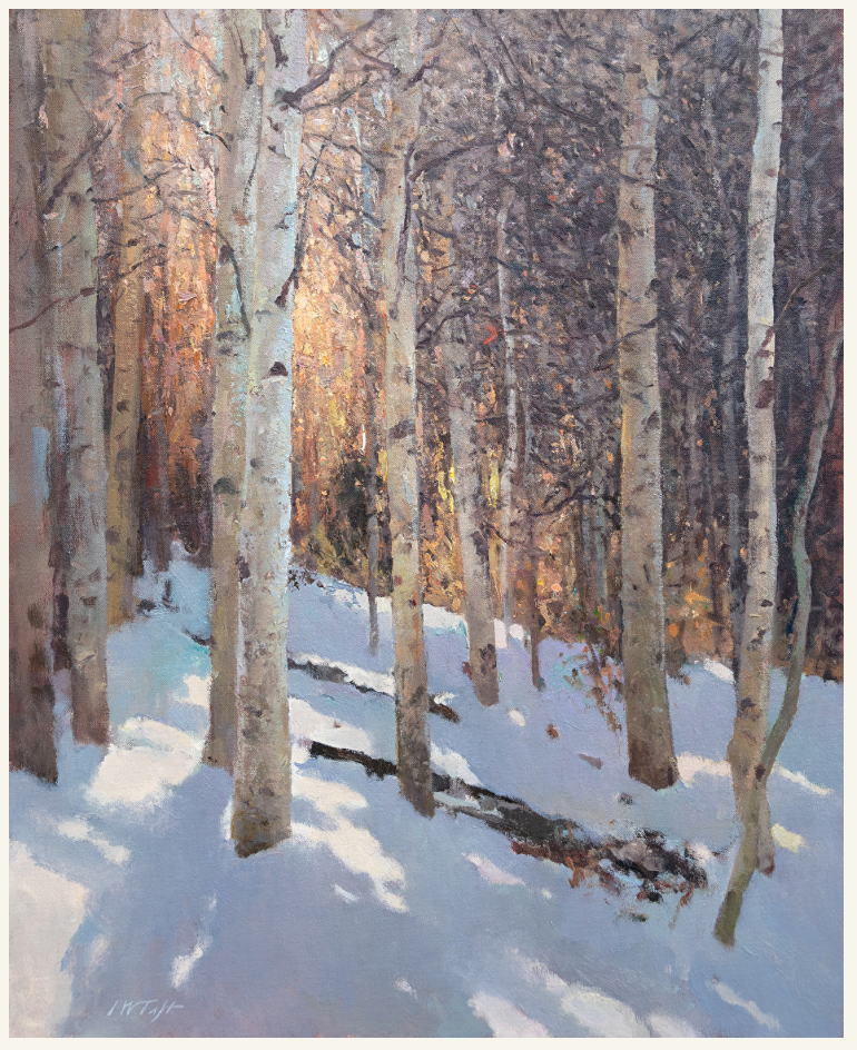 John quickly established himself in the art world. He has had multiple solo shows, has been in numerous national shows, including the Coors Western Art show in Denver, New York’s Salmagundi Club’s American Masters show, and multiple Oil Painters of America National shows where he has won several awards, including two Gold Awards. In 2022, his painting, “Thunder Run”, was added to the permanent collection at the Museum of Western Art in Kerrville, Texas. He has been the subject of feature articles in both Southwest Art Magazine and Western Art and Architecture